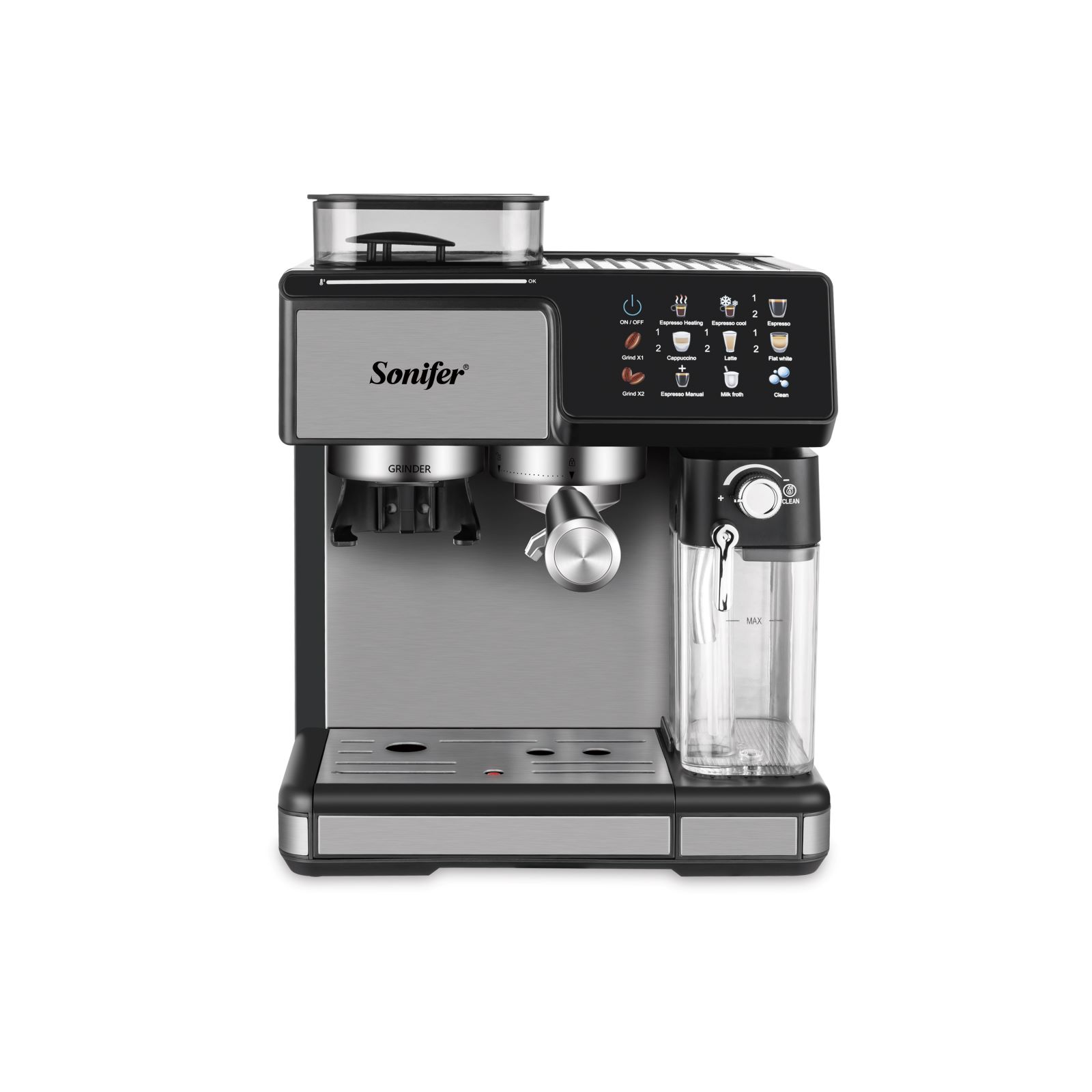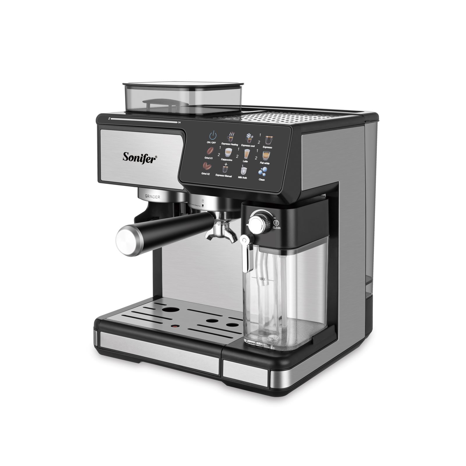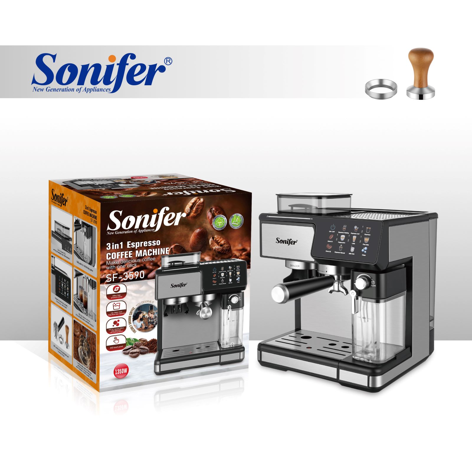 Espresso kavos aparatas Sonifer SF-3590 – aukštos kokybės, daugiafunkcis 3-in-1 prietaisas, sukurtas tikram kavos mėgėjui. Šis aparatas leidžia gaminti espresso, kapučino, latte, karštą vandenį ar pieno putas vos vienu mygtuko paspaudimu. Galingas 1350 W variklis, liečiamasis ekranas ir modernios technologijos užtikrina patogų naudojimą bei nepriekaištingą rezultatą.