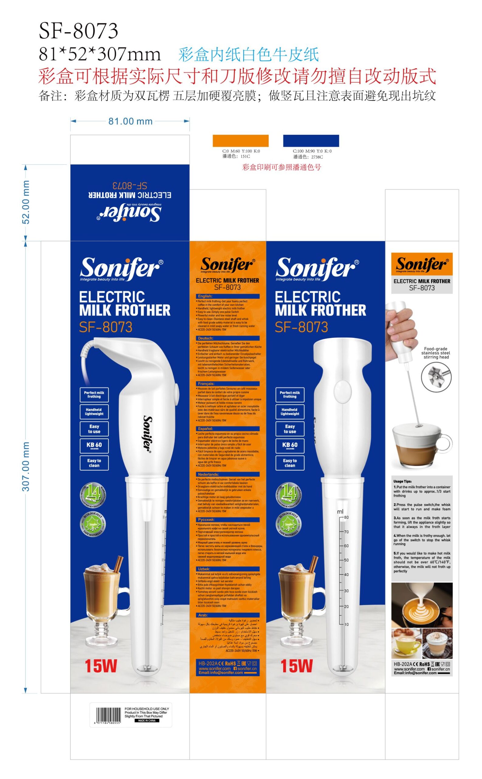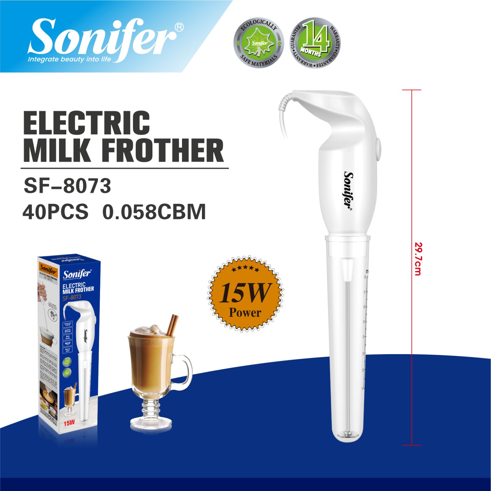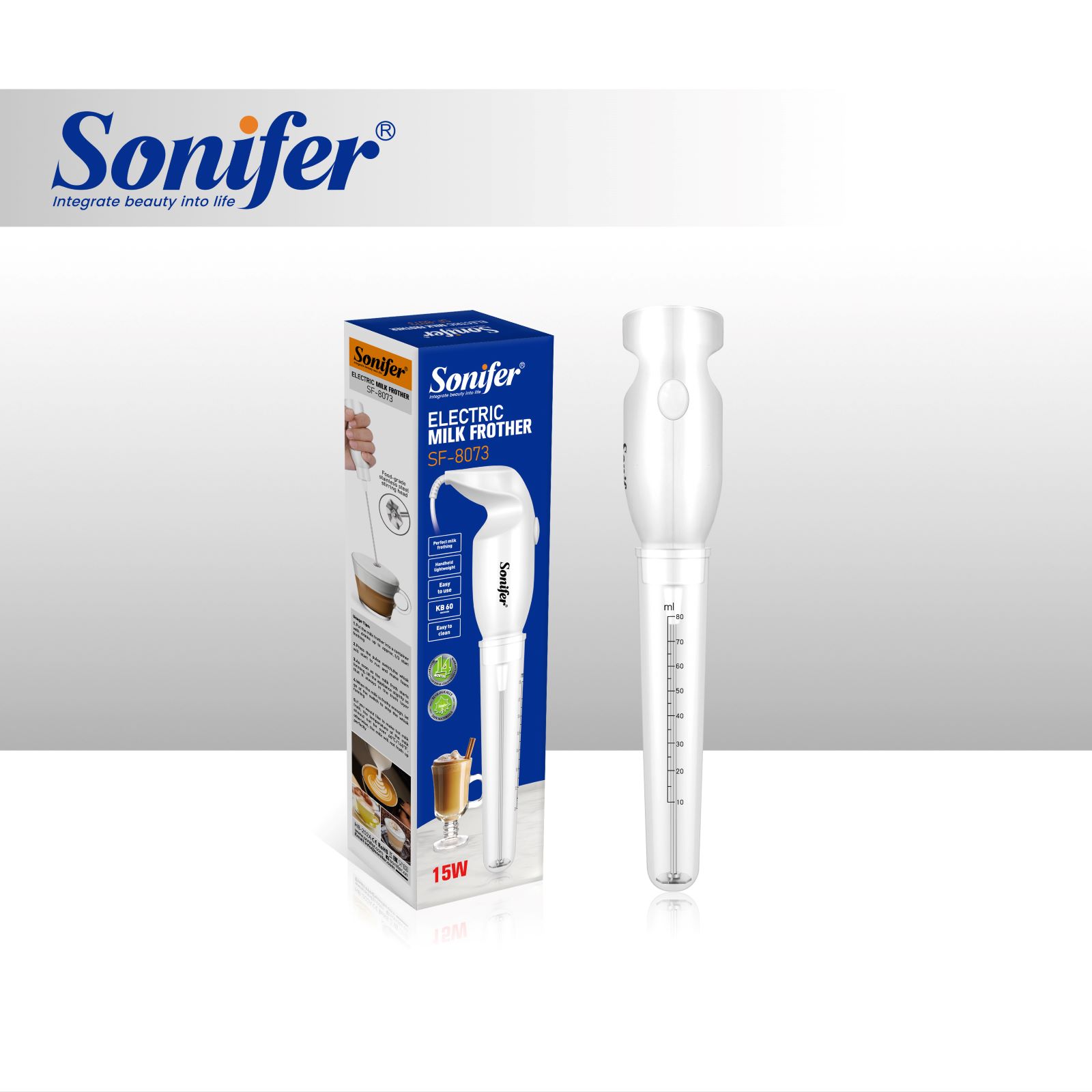 Pieno plakiklis Sonifer SF-8073 – rankinis, kompaktiškas ir patogus prietaisas, skirtas pieno plakimui ir purių putų gamybai. Su 15 W galia bei ABS ir nerūdijančio plieno konstrukcija, šis modelis idealiai tinka naudoti namuose.